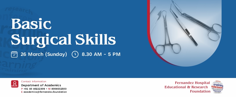Fernandez Hospital in association with ETHICON is conducting a Hands-on Workshop on Basic Surgical Skills to provide training on theatre etiquette, sutures & needles, tying knots, handling instruments, abdominal incision and skin sutures.
