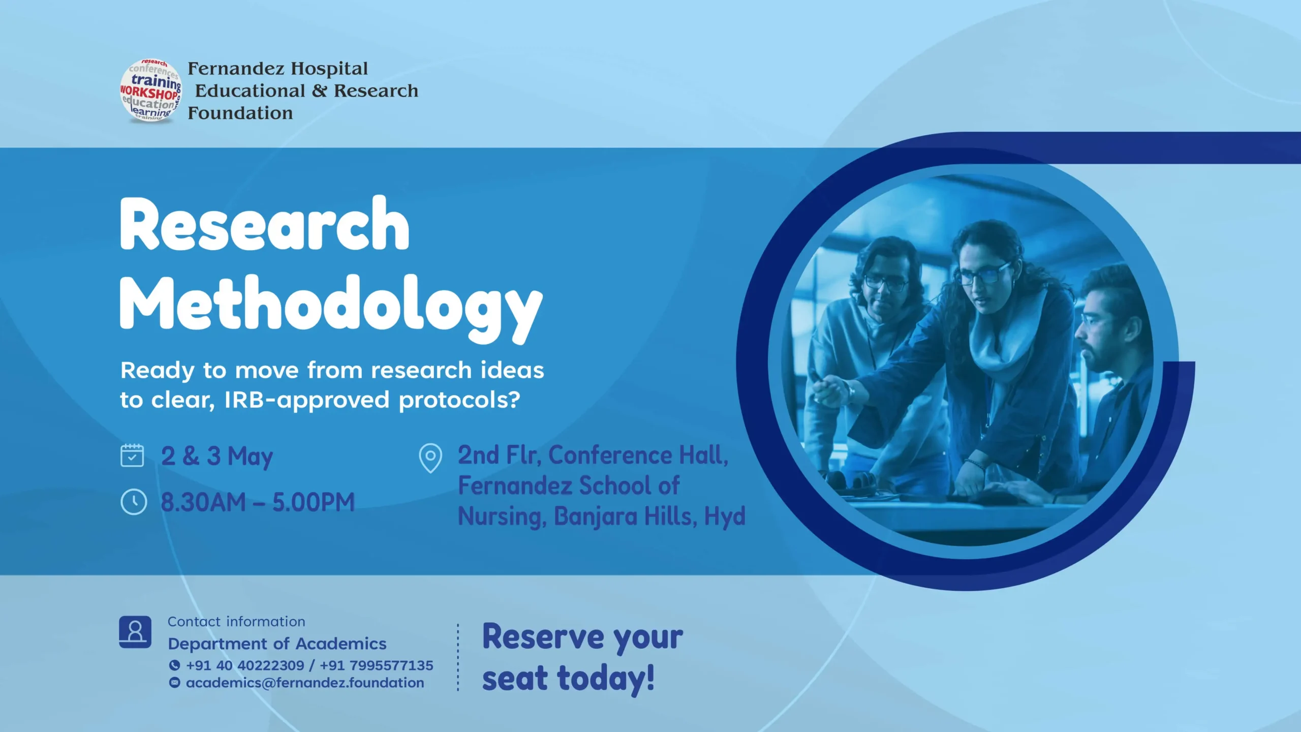 We are glad to inform you that Fernandez Hospital Educational and Research Foundation is organizing aResearch Methodology Workshop.